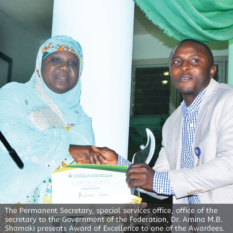 The Office of the Secretary to the Government of the Federation (OSGF) held its Maiden Merit Awards Ceremony on the 18th of December, 2018, at Shehu Musa Ya’Adua Center. This event is part of the effort to recognize and reward Officers with exceptional performance on their jobs. The merit award was for the immediate staff of OSGF, and all Agencies under its supervision.